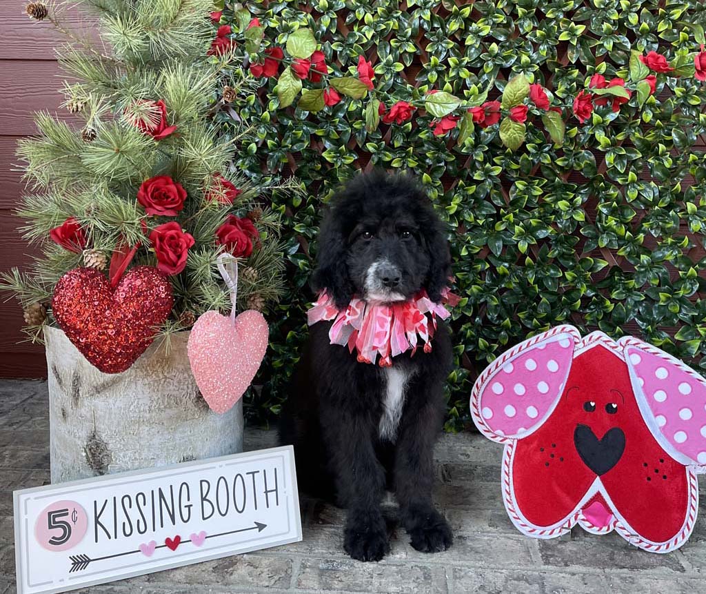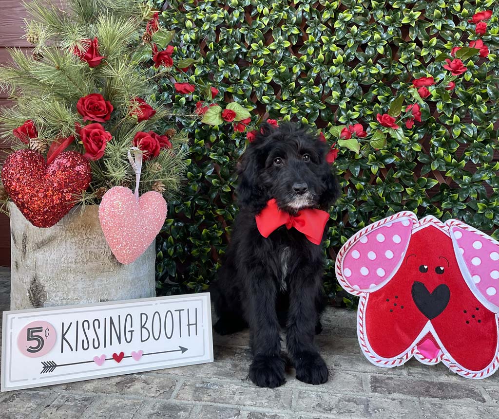 I’m “Candy Cane,” a very playful and very loving Goldendoodle that has a specialty — I give tons of kisses! I am active, smart, and very sweet. I’m a puppy that knows how to have fun, especially in the water bowls.